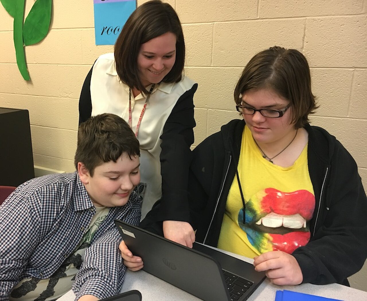 Tussey Mountain Site Coordinator Nikki Gephart works with a student
